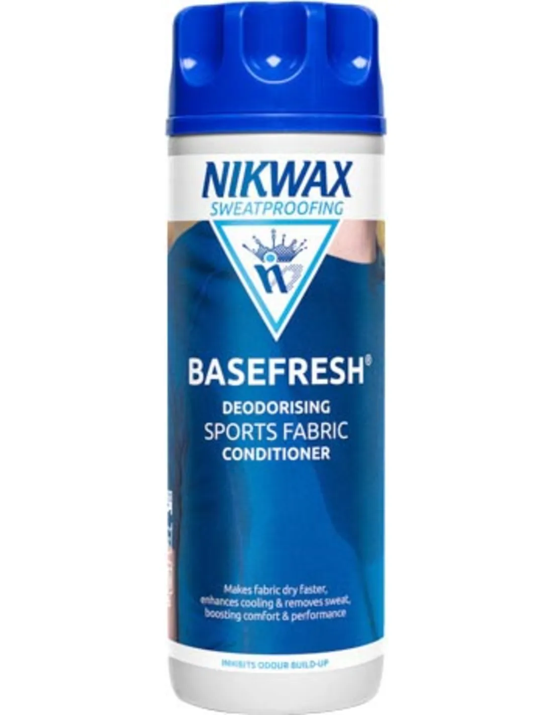 Nikwax BaseFresh maakt het gebruik van een conventioneel huishoudelijk reinigingsmiddel voor reiniging mogelijk, zonder afbreuk te doen aan de functionaliteit van de basislaag. Bovendien verbetert Nikwax BaseFresh de afvoer van transpiratievocht, versnelt het drogen en verwijdert en voorkomt geurophoping.