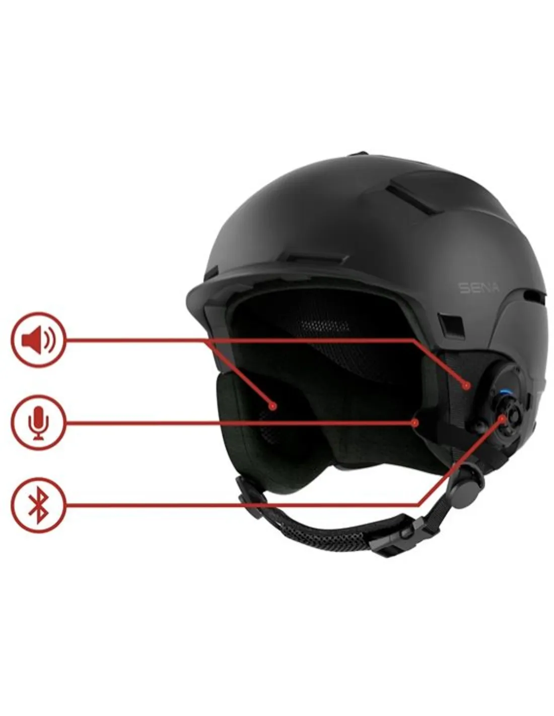 De Bluetooth®4.1 -aangedreven intercom werkt over een bereik van 1 kilometer. Het werkt met behulp van een grote, handschoenvriendelijke jog-draaiknop op het linkeroorkussen; perfect geschikt voor gebruik, zelfs met de dikste koude bescherming op je handen. Maximaal vier skiërs kunnen verbinding maken en communiceren via de standaard vierwegintercom. De helm is ook geschikt voor tweerichtings HD-intercom, waardoor een paar gebruikers ultrarijke High Definition-audio in hun communicatie kunnen ontvangen.